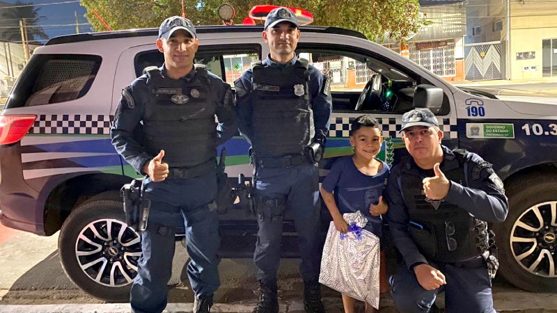 A Polícia Militar na noite de ontem (09/09), surpreendeu o Pequeno Pyetro com presente e passeio em viatura em Coxim.
