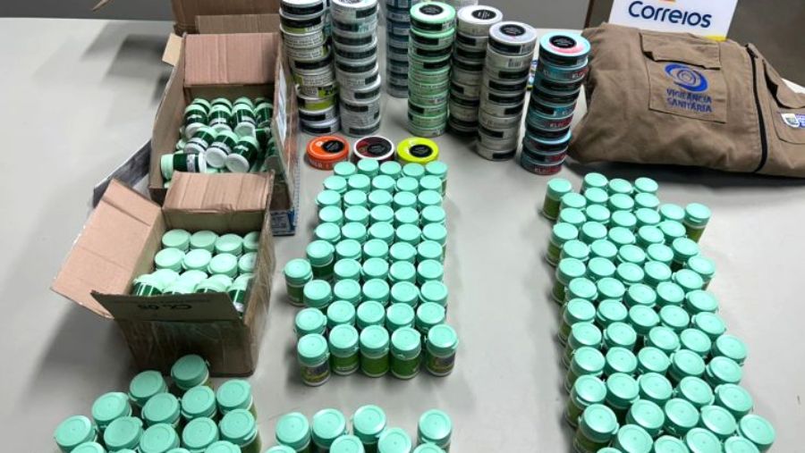 Um dos principais itens apreendidos foi o Snus, um produto derivado de nicotina sintética, sem autorização para importação, distribuição e comercialização no Brasil. Ao todo, foram encontrados 2.260 sachês de Snus, que contêm 6,5 mg de nicotina cada, o que representa 6,5 vezes mais do que a quantidade absorvida pelo corpo humano a partir da utilização de um cigarro comum (aproximadamente 1 mg de nicotina). Esse nível elevado de nicotina aumenta significativamente o risco de dependência química e pode ocasionar complicações graves, como câncer de boca, esôfago e estômago, além de problemas cardiovasculares e metabólicos.
