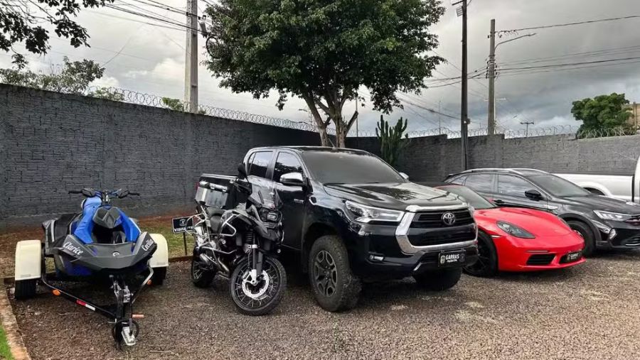 Veículos de luxo apreendidos com os suspeitos. — Foto: Ana Karla Flores/TV Morena