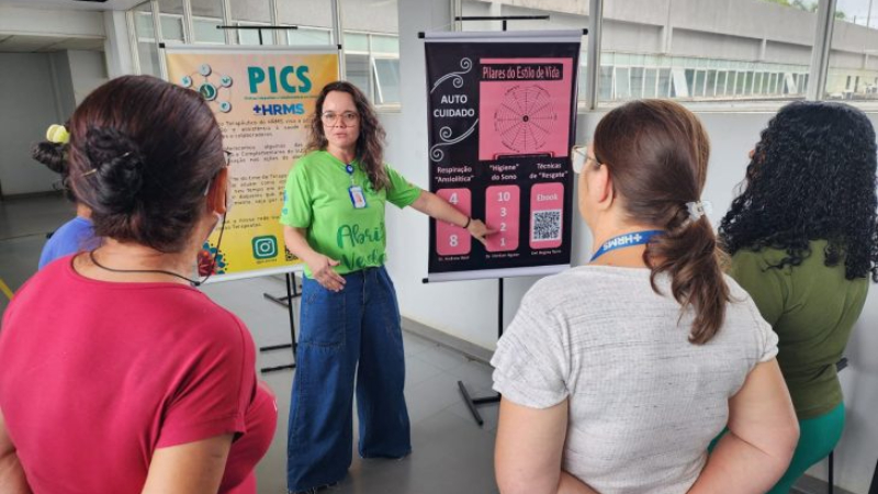 Também estão sendo apresentados as PICS (Práticas Integrativas e Complementares em Saúde) e orientações sobre CAT (Comunicação de Acidente de Trabalho), além de informações sobre a CIPA (Comissão Interna de Prevenção de Acidentes).